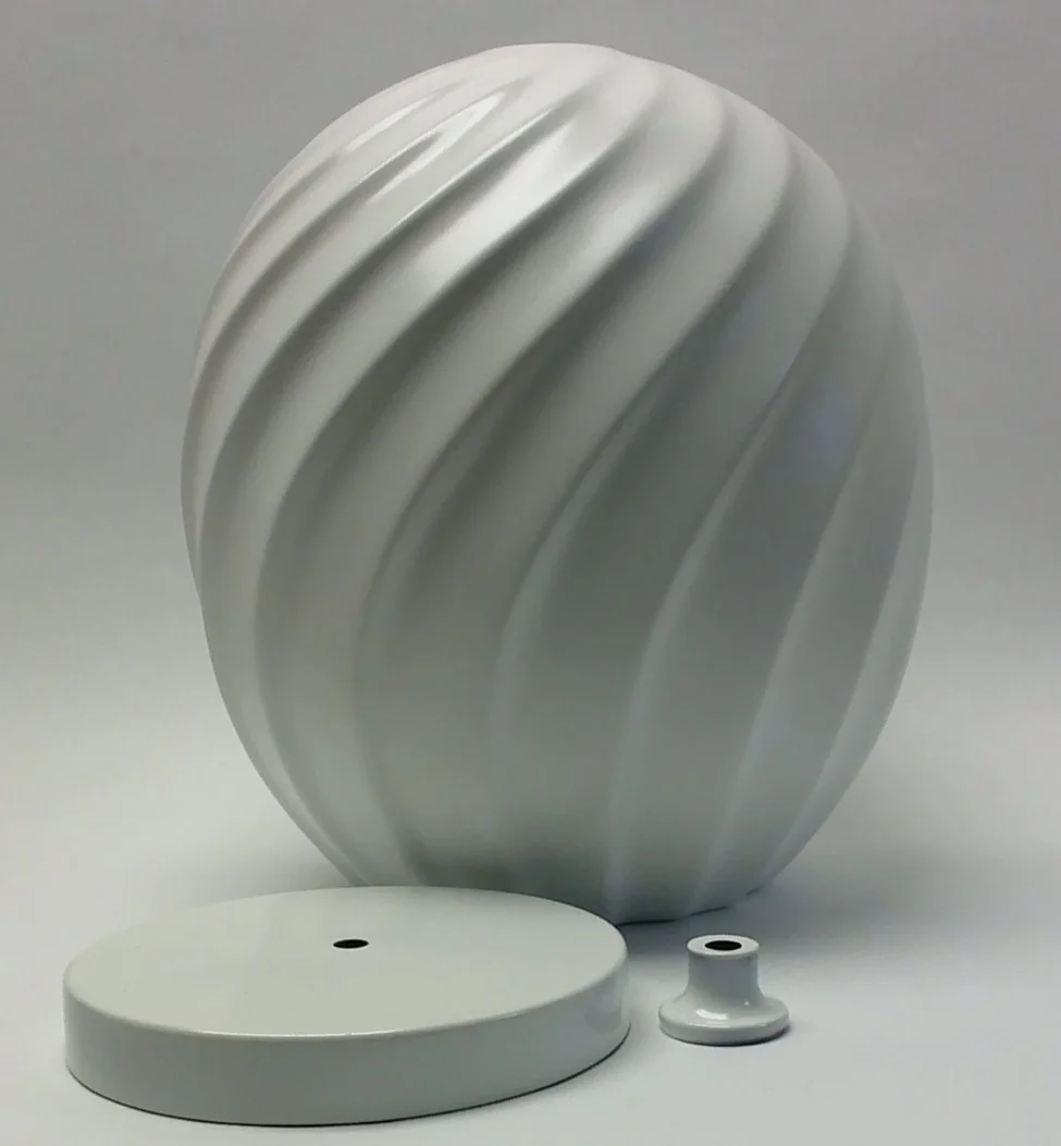 I used a gloss white spray paint and primer combined and it took about two coats for the lamp, base and small metal topper.