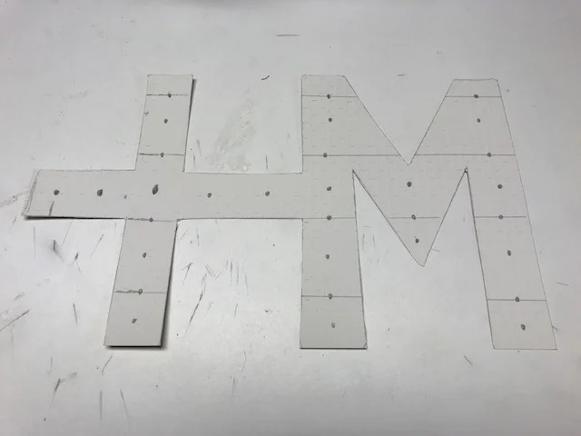 Next, draw out where you want your lights to be on your marquee letter. I counted the number of lights I had in my LED pack and Spaced them accordingly. As long as you have a equal number of lights spaced out along your letter, it should look great! Draw a dot each place you want a light to be.