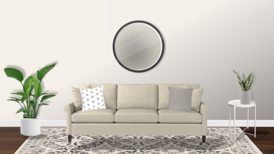 My front windows are directly opposite the sofa wall, so for me, the round mirror is not the best option. I try not to place large mirrors directly across from windows. I much prefer them on perpendicular walls. My rule of thumb: only place mirrors opposite what you want to see because you will essentially be doubling the view.