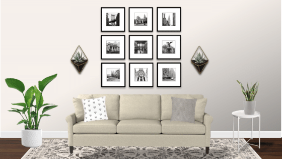 Now, if you prefer mixing shapes and sizes in asymmetrical ways, then I say have at it! For me, I prefer this type of gallery wall.